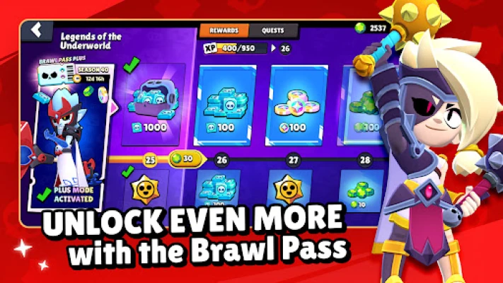 अपनी जीत को और भी शानदार बनाने के लिए Brawl Pass के माध्यम से लगातार पुरस्कार प्राप्त करें, जिसमें रत्न, पावर पॉइंट्स, पिन्स और Starr Drops शामिल हैं, जो हर सीज़न में नई सामग्री लेकर आते हैं। PvP लीडरबोर्ड पर चढ़कर खुद को सर्वश्रेष्ठ ब्रॉलर साबित करें और साथी खिलाड़ियों के साथ एक क्लब बनाकर रणनीति साझा करें व मिलकर युद्ध करें। Brawl Stars एक लगातार विकसित होने वाला ब्रह्मांड है, जहाँ नियमित रूप से नए ब्रॉलर, स्किन्स, मैप्स और गेम मोड्स पेश किए जाते हैं। Supercell, Clash of Clans और Clash Royale जैसी हिट गेम्स के निर्माताओं द्वारा पेश किया गया यह खेल आपको एक बेजोड़ मल्टीप्लेयर अनुभव देता है।