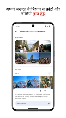 सिर्फ़ स्टोरेज ही नहीं, Google Photos आपके पलों को निखारने के लिए शक्तिशाली AI-आधारित संपादन उपकरण भी प्रदान करता है। मैजिक इरेज़र से अवांछित वस्तुओं को हटाएँ, खराब फ़ोकस वाली धुंधली तस्वीरों को शार्प करें, और पोर्ट्रेट लाइट से अपनी तस्वीरों को रोशन करें – सब कुछ कुछ ही टैप में। अपनी गैलरी को स्वतः व्यवस्थित होते देखें, जहाँ समान तस्वीरें स्टैक हो जाती हैं और स्मार्ट फ़ोल्डर स्क्रीनशॉट व दस्तावेज़ों को संभालते हैं। प्राकृतिक भाषा में खोज करके अपनी पसंदीदा यादों को तुरंत ढूँढें – जैसे "पहाड़ों में मेरे दोस्त" या "मेरे पालतू जानवर के साथ खेलते हुए" – और संवेदनशील पलों को सुरक्षित लॉक किए गए फ़ोल्डर में रखें।