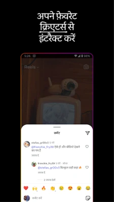 अपनी कहानियों को साझा करने के अनूठे तरीकों की खोज करें। 24 घंटे में गायब हो जाने वाले नोट्स और स्टोरीज़ के माध्यम से अपने दोस्तों के वास्तविक समय के अपडेट्स और दिन-प्रतिदिन के अनुभवों को तुरंत साझा करें। निजी समूह चैट में अपने करीबी लोगों के साथ बिना किसी फ़िल्टर के यादगार पल बांटें। अपने हालिया अनुभवों, यात्राओं या आयोजनों की झलकियाँ अपनी फ़ीड पर पोस्ट करके हमेशा के लिए संजोएं। Instagram Reels के साथ अपनी रचनात्मकता को उड़ान दें, लघु और मनोरंजक वीडियो बनाएं जो आपकी दुनिया को एक फ़िल्मी अंदाज़ देते हैं। अपनी पोस्ट को और भी खास बनाने के लिए विशेष टेम्पलेट्स, संगीत, स्टिकर्स और फ़िल्टर्स का उपयोग करें।