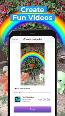 **लियो एआर** की उन्नत तकनीक से निर्मित हजारों 3D ऑब्जेक्ट्स और विशेष प्रभाव जैसे गिरते नोट, उड़ते गुब्बारे या गुलाबों की बारिश आपकी रचनाओं में जान डाल देते हैं। अपनी स्क्रीन पर केवल एक स्पर्श से, आप टेक्स्ट संदेशों को एनिमेट कर सकते हैं, AR संगीत वीडियो बना सकते हैं, या अपनी दुनिया में फोटो स्टिकर और वर्चुअल तत्व स्थापित कर सकते हैं। बस अपने फ़ोन को एक सतह की ओर इंगित करें, स्क्रीन पर टैप करें, और अपनी कल्पना को आकार दें। अपने लिविंग रूम में एक डायनासोर को नाचते हुए देखें या अपने पूल में एक शार्क को तैरते हुए; रचनात्मकता की कोई सीमा नहीं है।