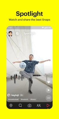 Snapchat आपके हर पल को कैमरे से कैप्चर करने और दोस्तों के साथ साझा करने का सबसे अनोखा और जीवंत तरीका है। सीधे कैमरे पर पहुँचकर, आप झट से एक तस्वीर ले सकते हैं या वीडियो बनाने के लिए दबाकर रख सकते हैं। लेंस, फ़िल्टर और बिटमोजी की अनूठी दुनिया में गोता लगाएँ, और अपनी हर स्नैप को एक नया, व्यक्तिगत अंदाज़ दें। Snapchat समुदाय द्वारा रोज़ाना बनाए जाने वाले नए और रोमांचक लेंसों के साथ अपनी रचनात्मकता को व्यक्त करने के अनंत तरीके खोजें।